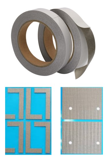 Ni/Cu textiles with conductive adhesive